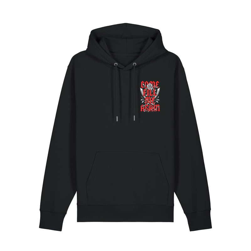 Come Fill Me Again... the final line of our famous terrace anthem. Stand out with this gritty and bold graphic tee. Featuring striking gothic red lettering, the white rose of Yorkshire rose and stainless steel crossed blades.